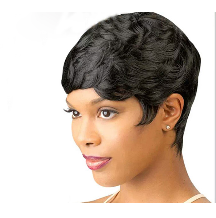 Black Short Feathers Synthetic WigBlack Short Feathers Synthetic Wig