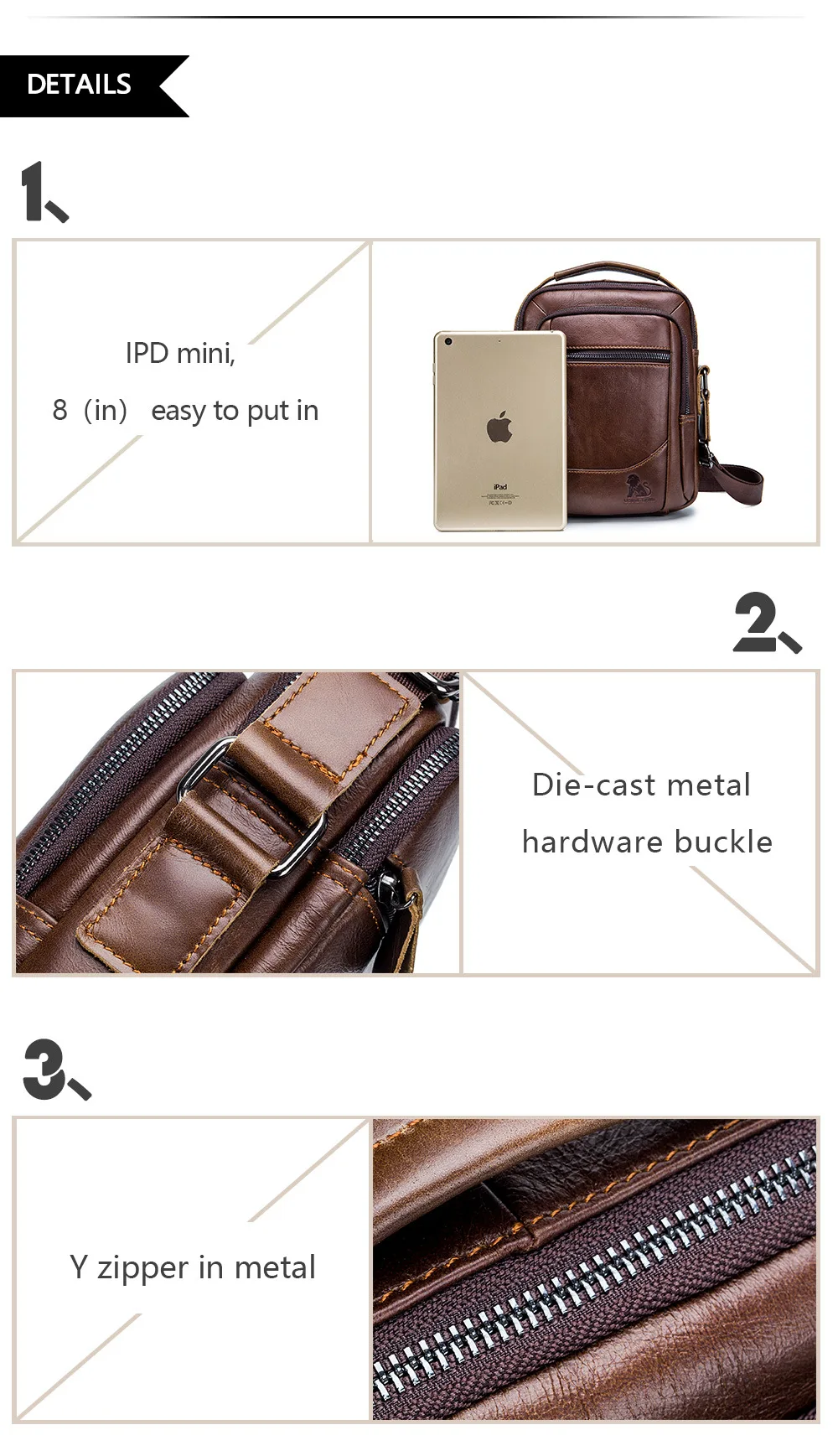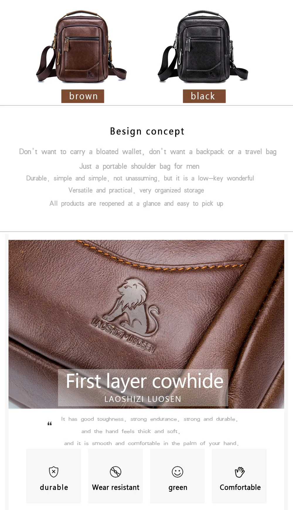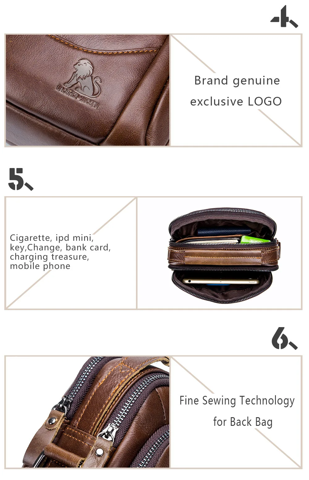 - Materials: Genuine Leather
